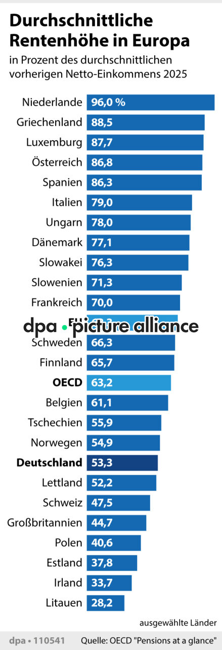 Durchschnittliche Rentenhöhe in Europa